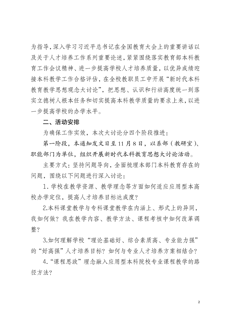 关于深化新时代本科教育教学思想观念大讨论的通知