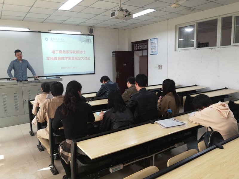电子商务系于11月11日在六教211开展了新时代本科教育教学思想观念大讨论活动,主要就学校在教学资源、教学理念等方面如何适应应用型本科高校办学定位,提高人才培养目标达成度?本科课堂教学与专科课堂教学在内涵上、形式上的异同,教学内容、教学方法、课程考核中如何改革调整? 如何理解学校“理论基础好、综合素质高、专业能力强”的“好高强”人才培养目标?如何与专业人才培养方案相结合?“课程思政”理念融入应用型本科院校专业课程教学的路径方法?等6方面问题进行问题讨论。电子商务系主任宋超首先传达了本次大讨论的指导思想和活动精神,其次指出本次活动,各位老师发言需严格按照学院文件要求,有针对性的剖析问题,讨论不足和改进思路,随后,系部老师依次进行发言,分享新时代本科教育教学思想观念的体会和感悟。
