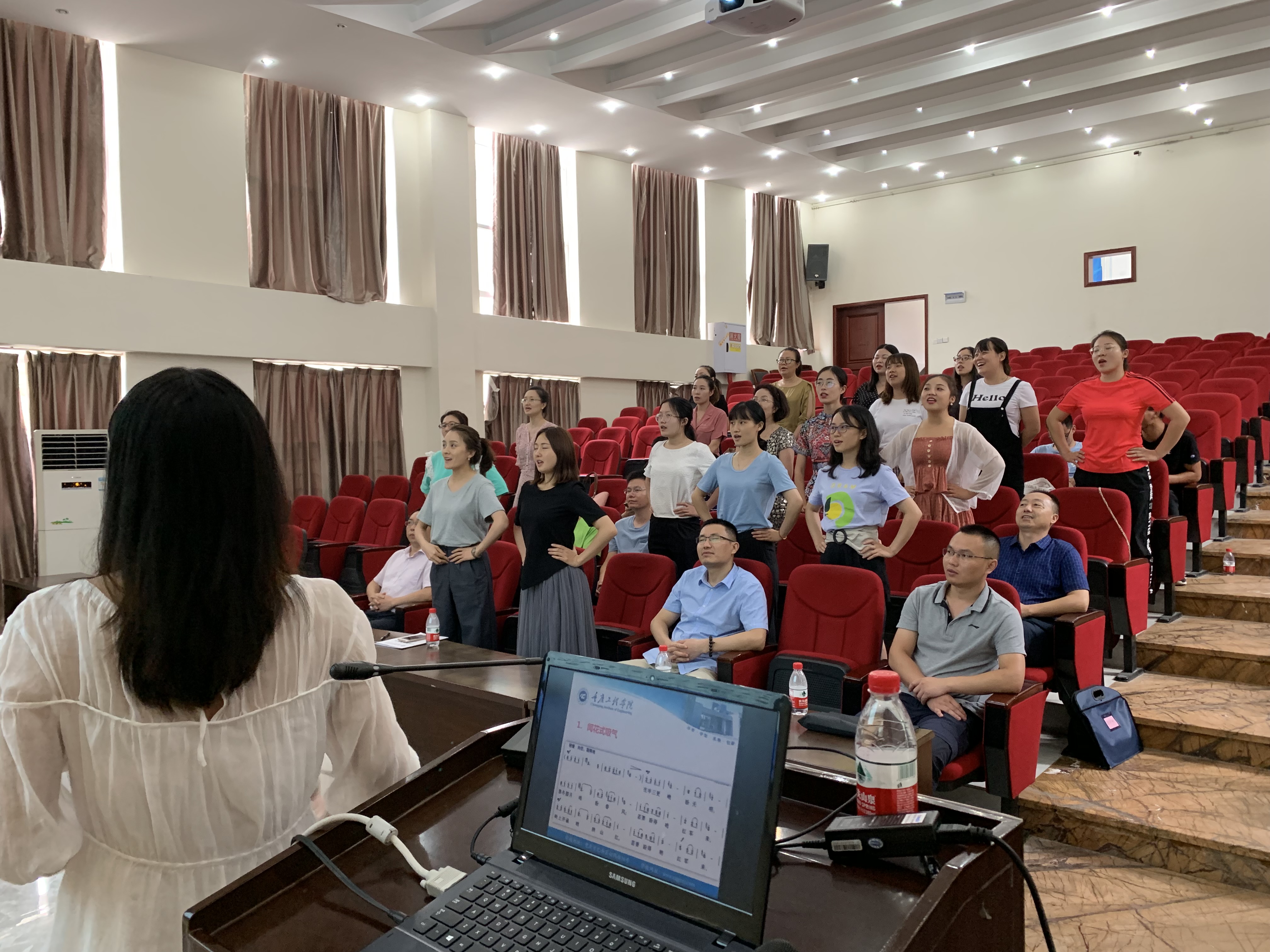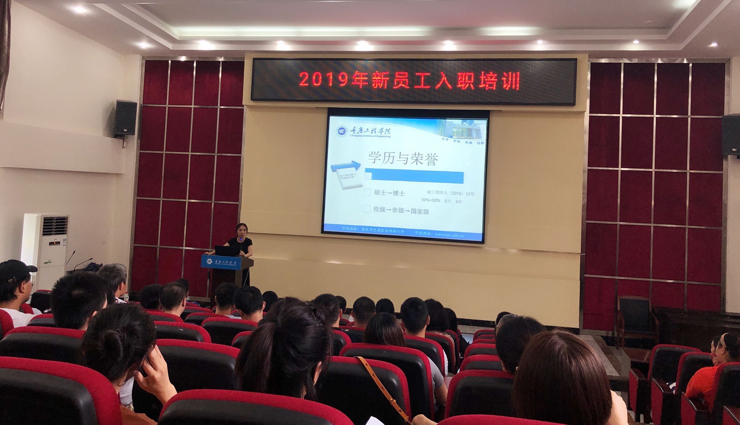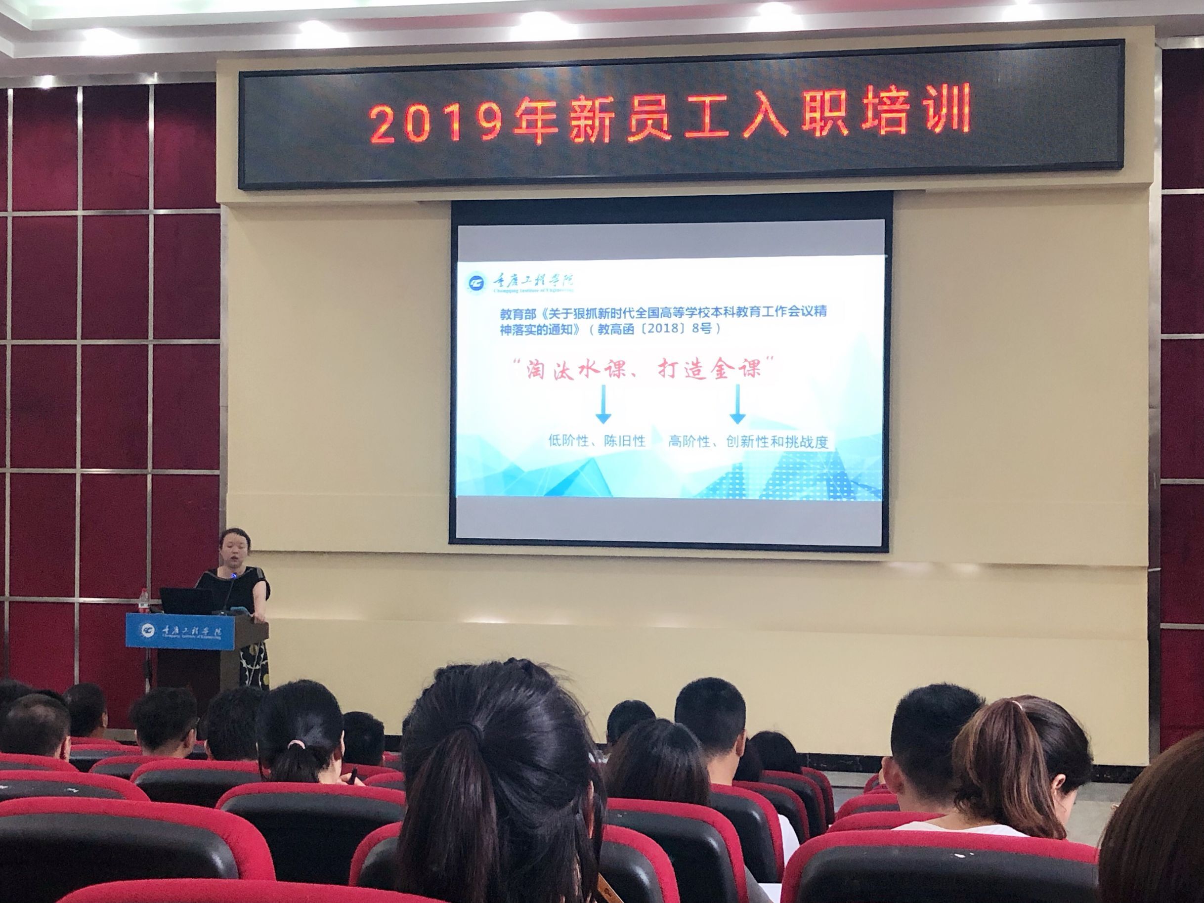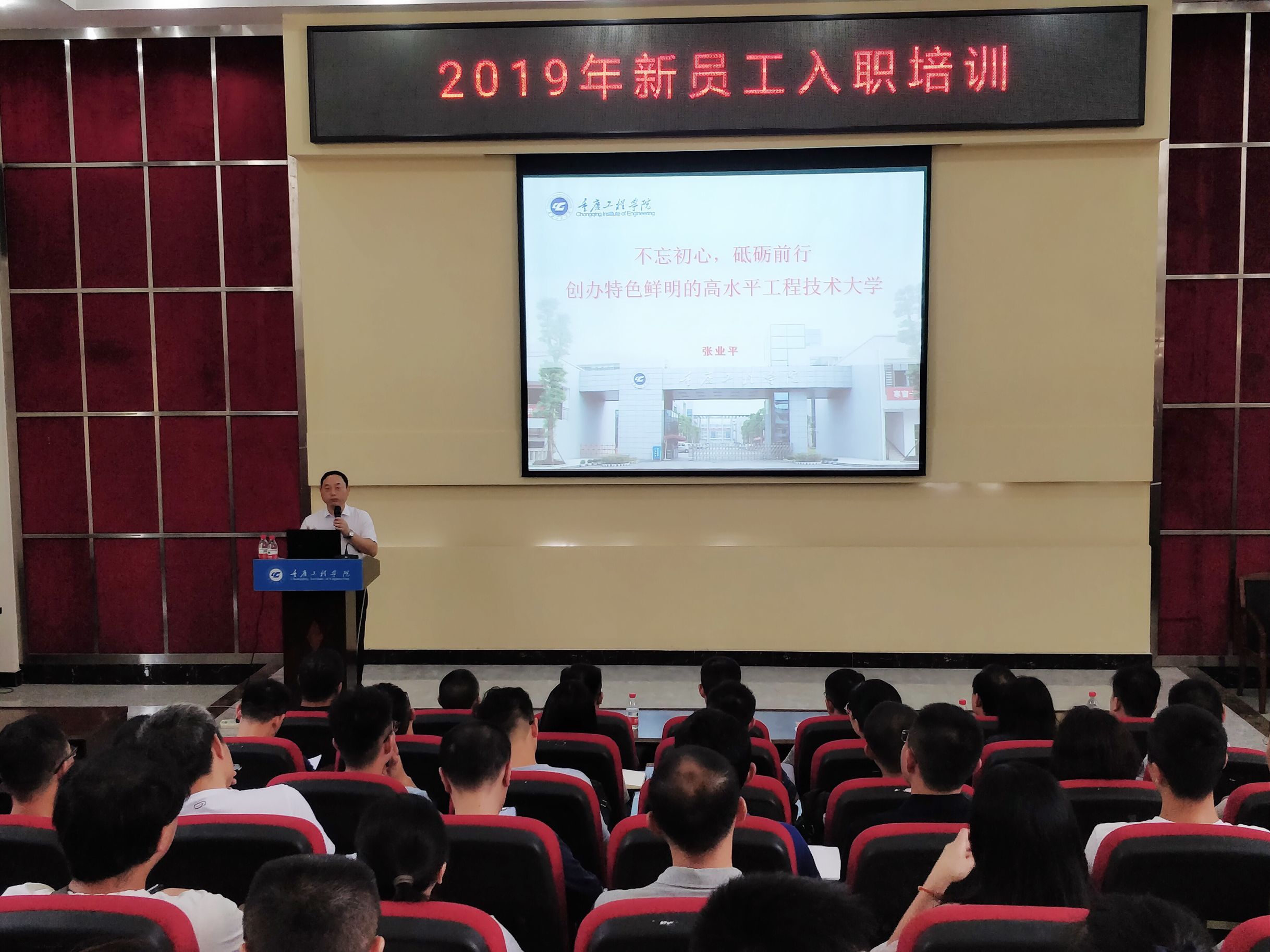 此次入职培训,在培训课程设置方面,分别邀请了人事处(教师发展中心)、教务处、科技处、学生处、信息中心、图书馆、基建后勤处、财务处等部门负责人,针对教育教学、政策制度、科研项目申报、信息化流程、办公流程、后勤保障等政策制度进行了深入浅出的培训,同时安排形体、PPT制作等实操训练以及骨干教师以“如何当好一名应用型本科教师”为主题现身说法,其中专门设计了返岗研修环节,邀请参加西南大学岗前培训学习代表们与大家分享、交流岗前培训心得体会。