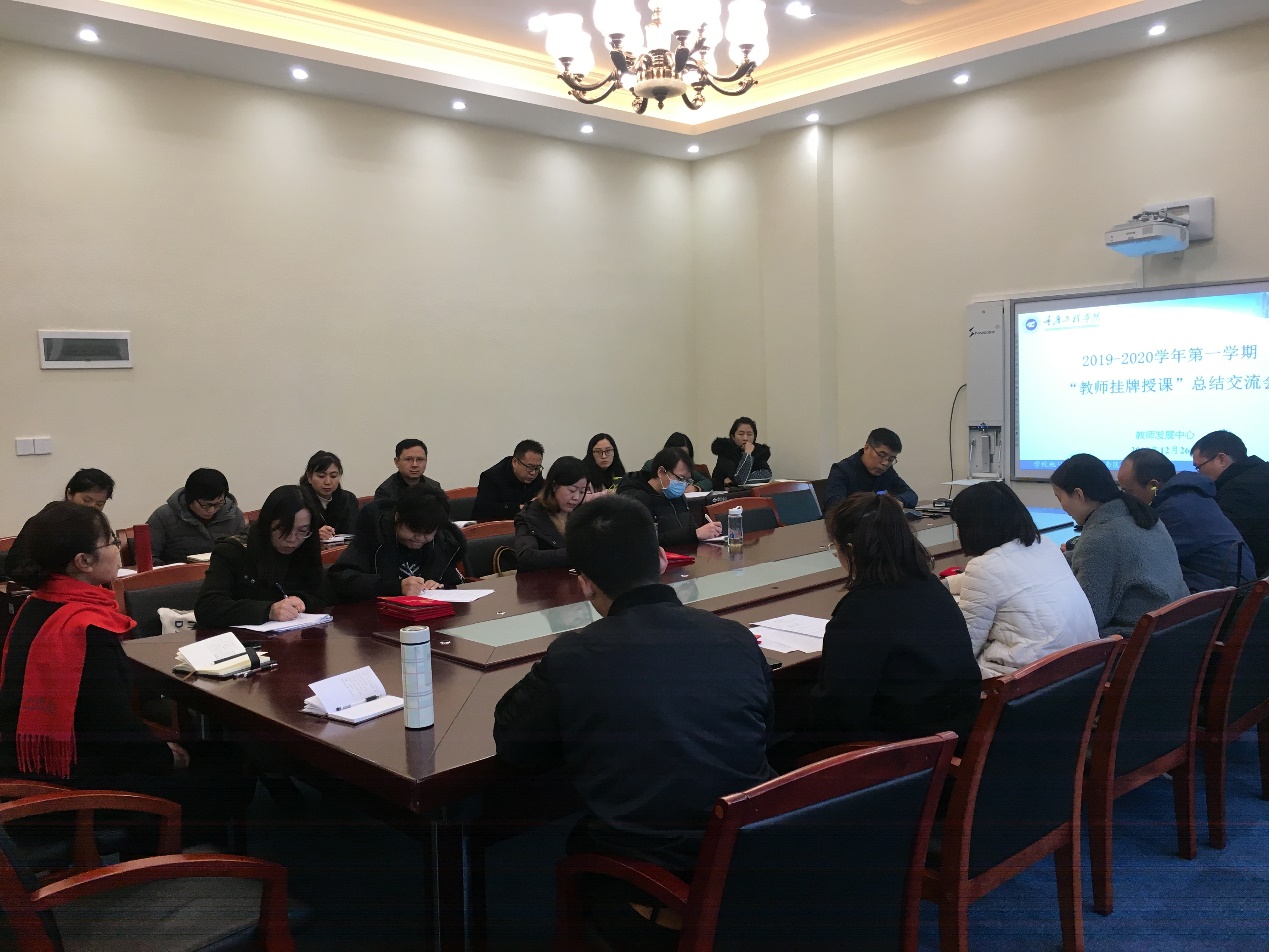 2019年12月26日下午2点,教师发展中心在学校第六会议室组织召开2019-2010学年第1学期教师“挂牌授课”总结与研讨活动。学校王琼花副校长、教师发展中曹明武教授、郭爱平教授、本学期挂牌授课教师、下学期挂牌授课教师等参加了本次活动。