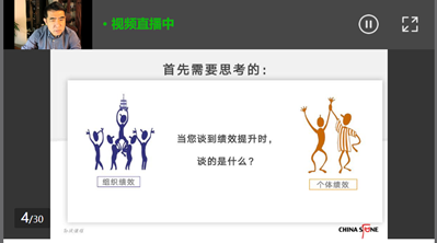 为拓宽干部与储备干部教育教学视野和理念,提升工作的“获得感”,实现组织、团队和个人目标“联动共赢”,人事处(教师发展中心)借助在线直播于4月6日组织处级干部、职能部门全体员工、二级学院科级干部、行政人员参加了中国劳动关系学院人力资源管理研究所所长、副教授、首席人力资源专家-孙波博士“绩效不是管出来的”系列讲座的第一讲。