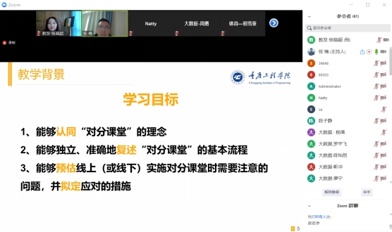 本网讯(图 张楠 文 张晓颖)4月8日14:00-16:00,由教师发展中心组织的“线上对分课堂的操作与实践”的主题在线沙龙讨论活动通过ZOOM会议平台顺利开展,来自8个二级学院共计81名教师参加。