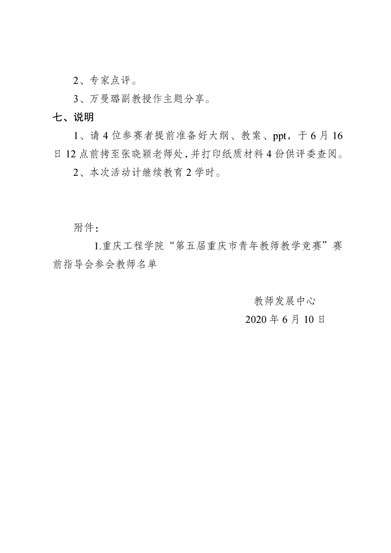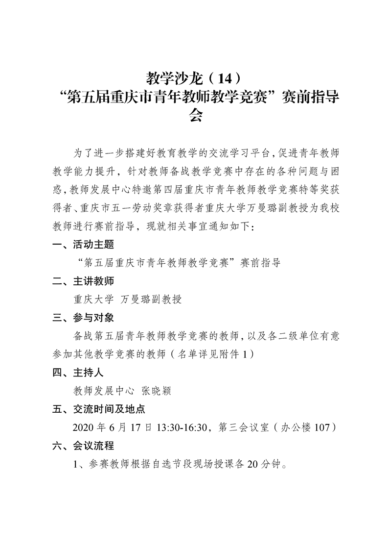 关于“第五届重庆市青年教师教学竞赛”赛前指导会的通知
