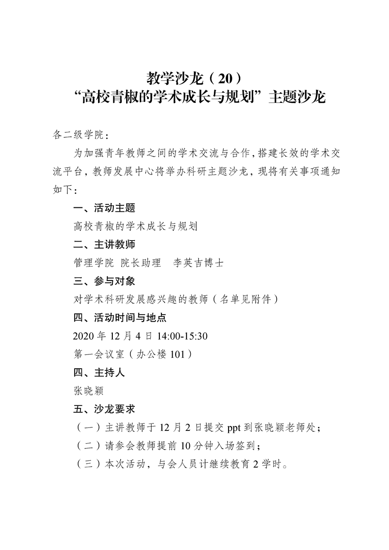 关于开展“高校青椒的学术成长与规划”主题沙龙的通知