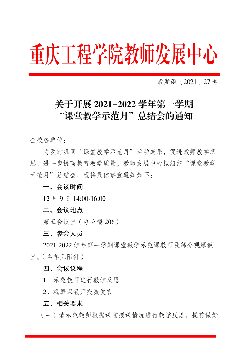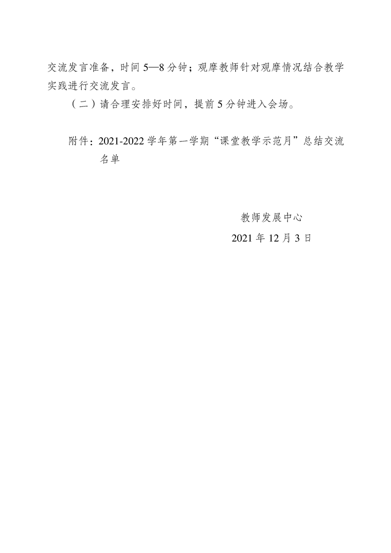 关于开展2021-2022学年第一学期“课堂教学示范月”总结会的通知