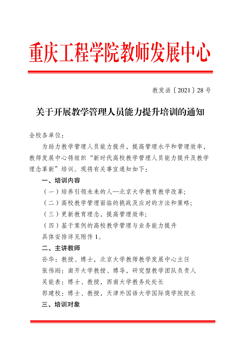 关于开展教学管理人员能力提升培训的通知