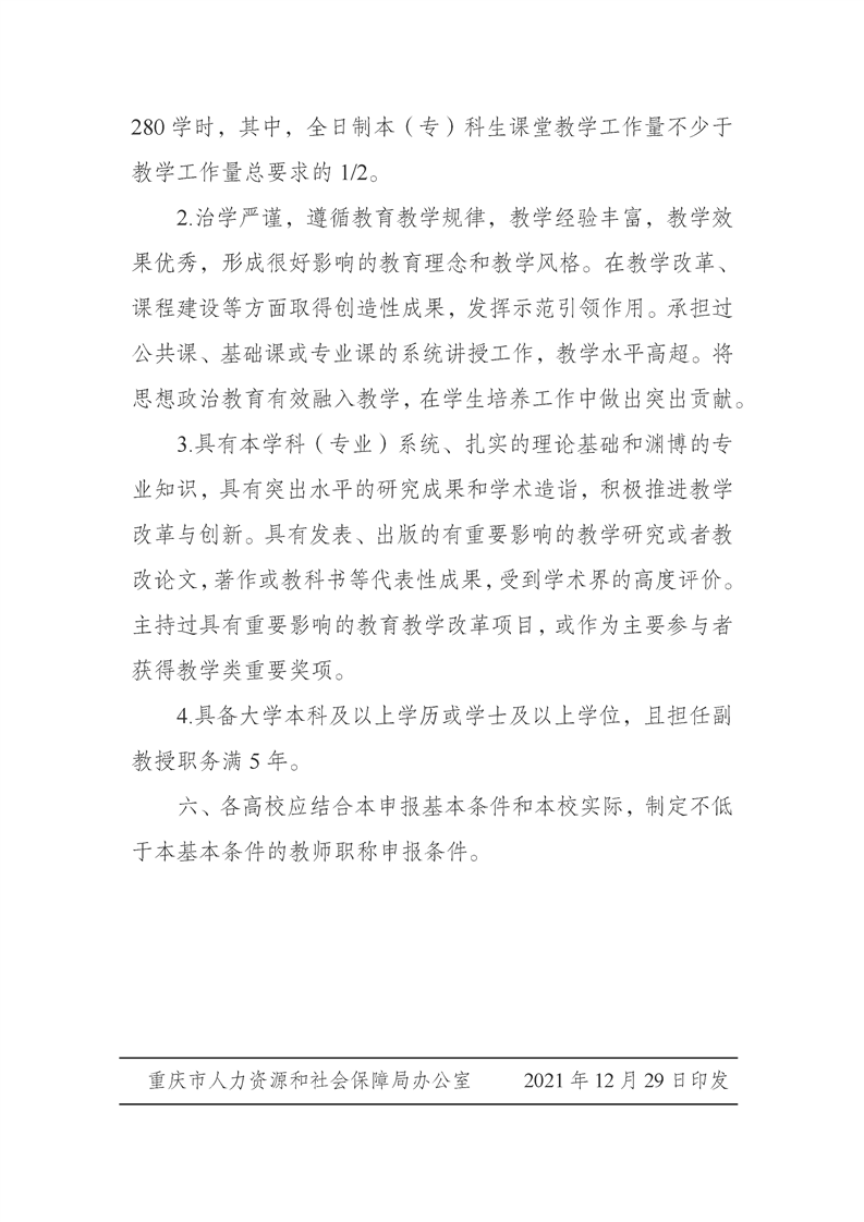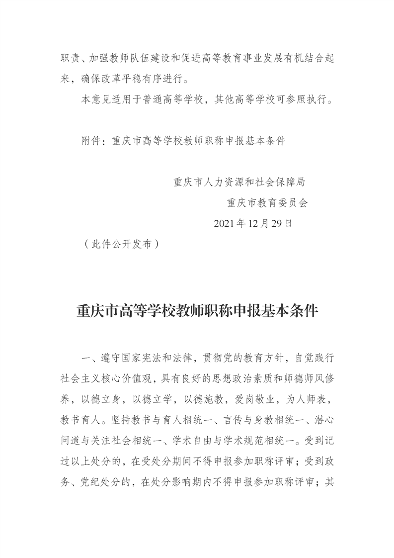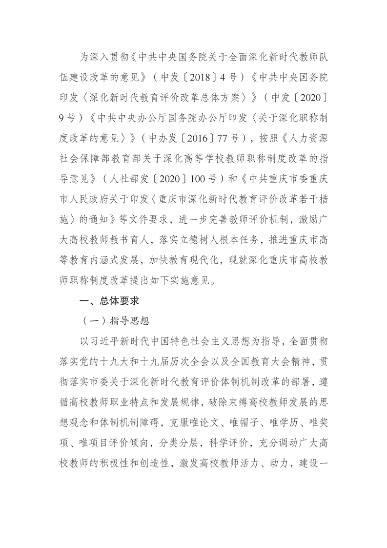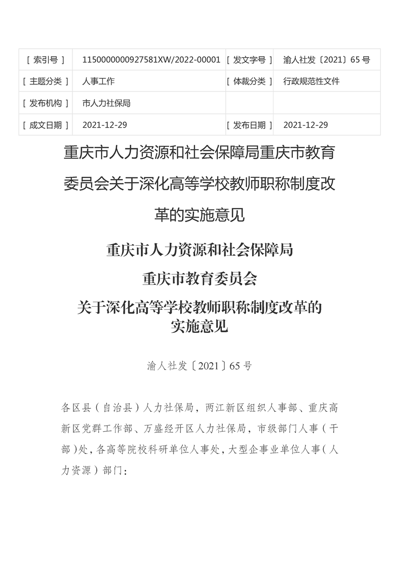 重庆市人力资源和社会保障局 重庆市教育委员会关于深化高等学校教师职称制度改革的实施意见