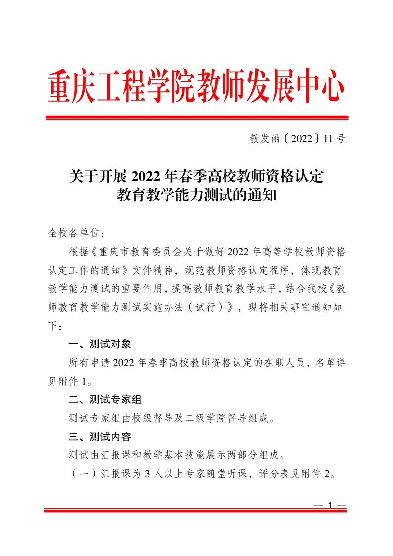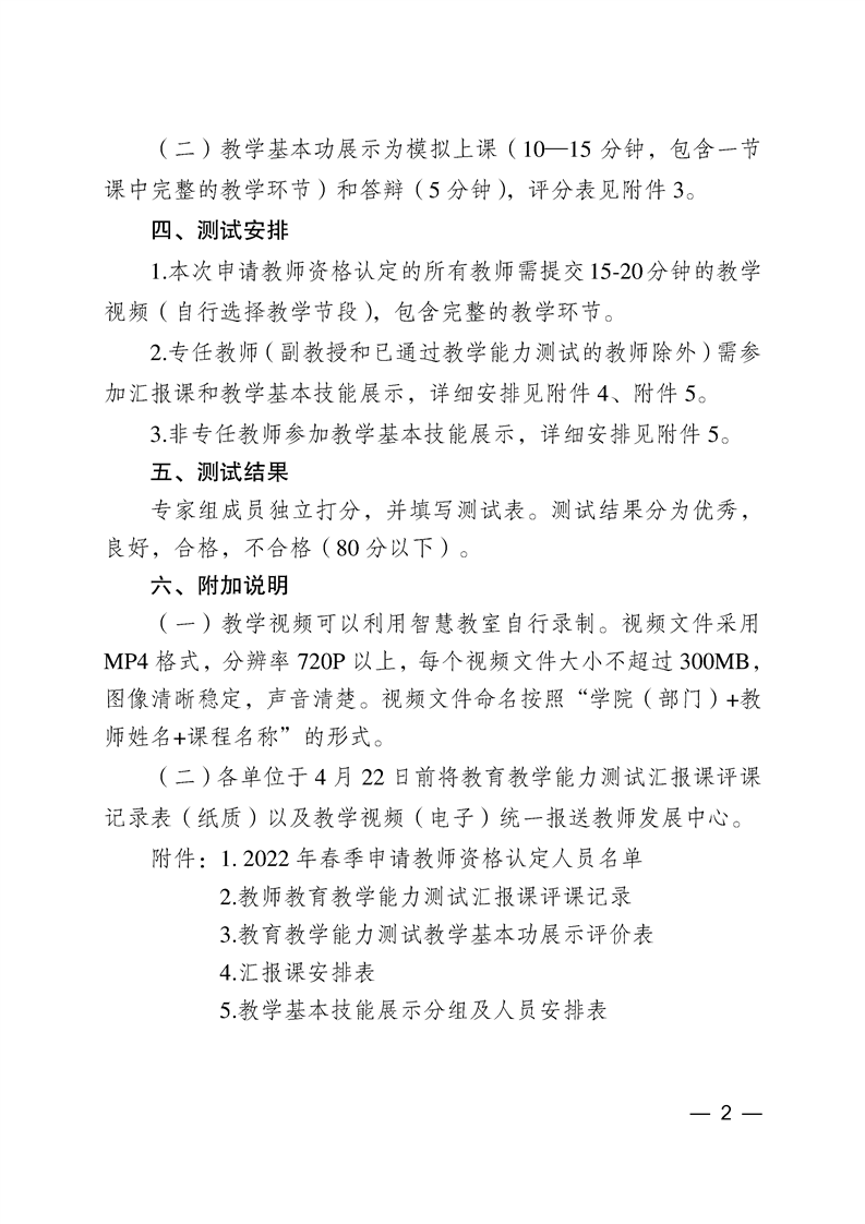 关于开展2022年春季高校教师资格认定教育教学能力测试的通知