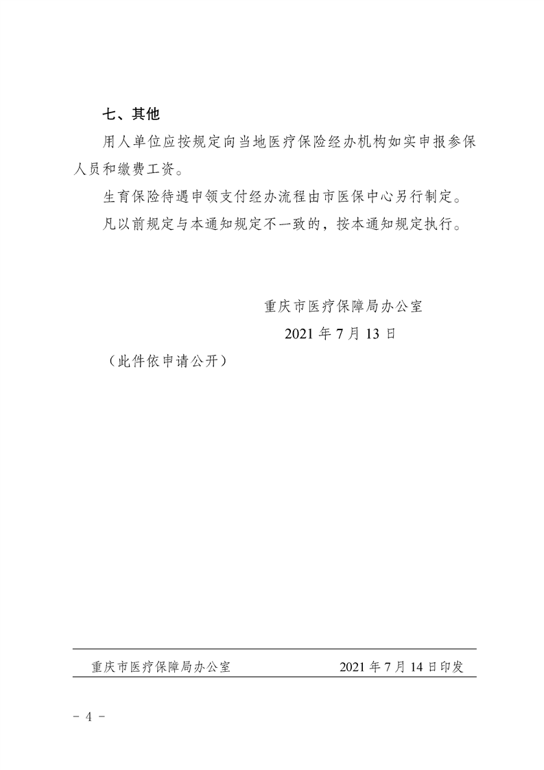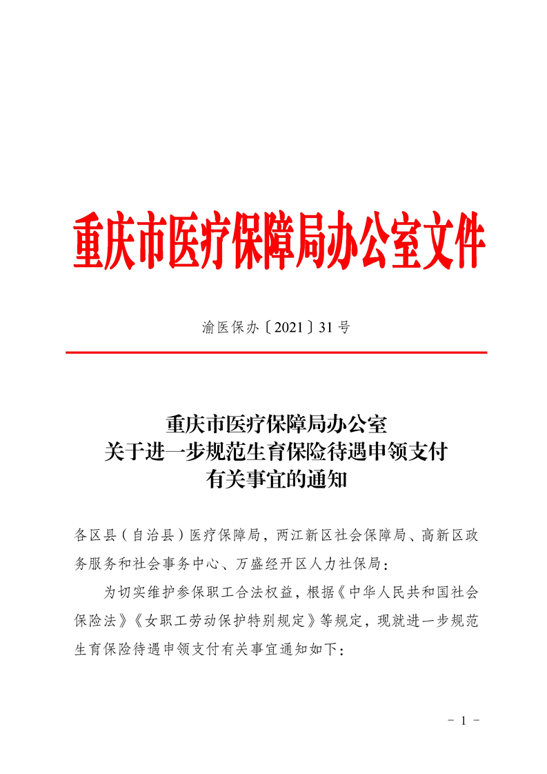 重庆市医疗保障局办公室 关于进一步规范生育保险待遇申领支付有关事宜的通知