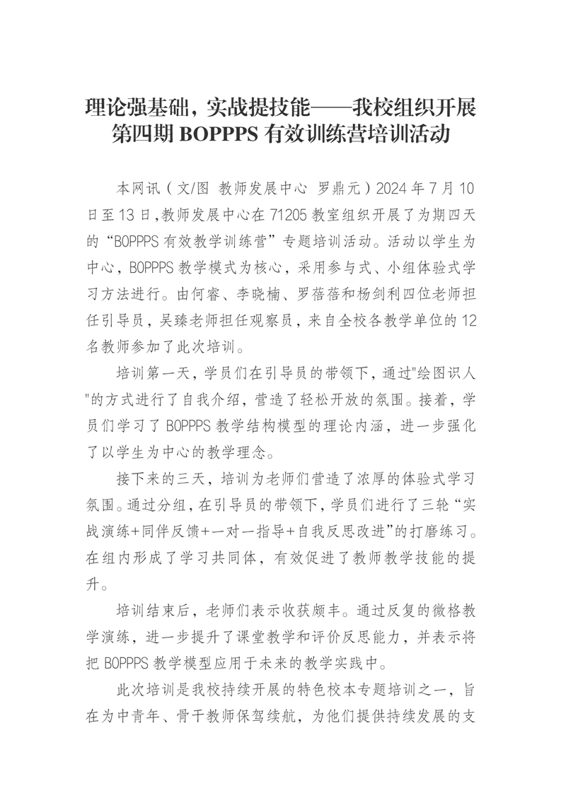 理论强基础,实战提技能——我校组织开展第四期BOPPPS有效训练营培训活动