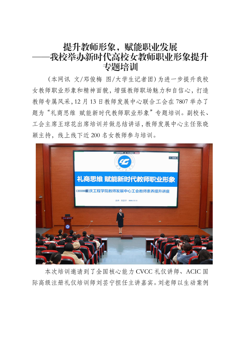 提升教师形象,赋能职业发展——我校举办新时代高校女教师职业形象提升专题培训