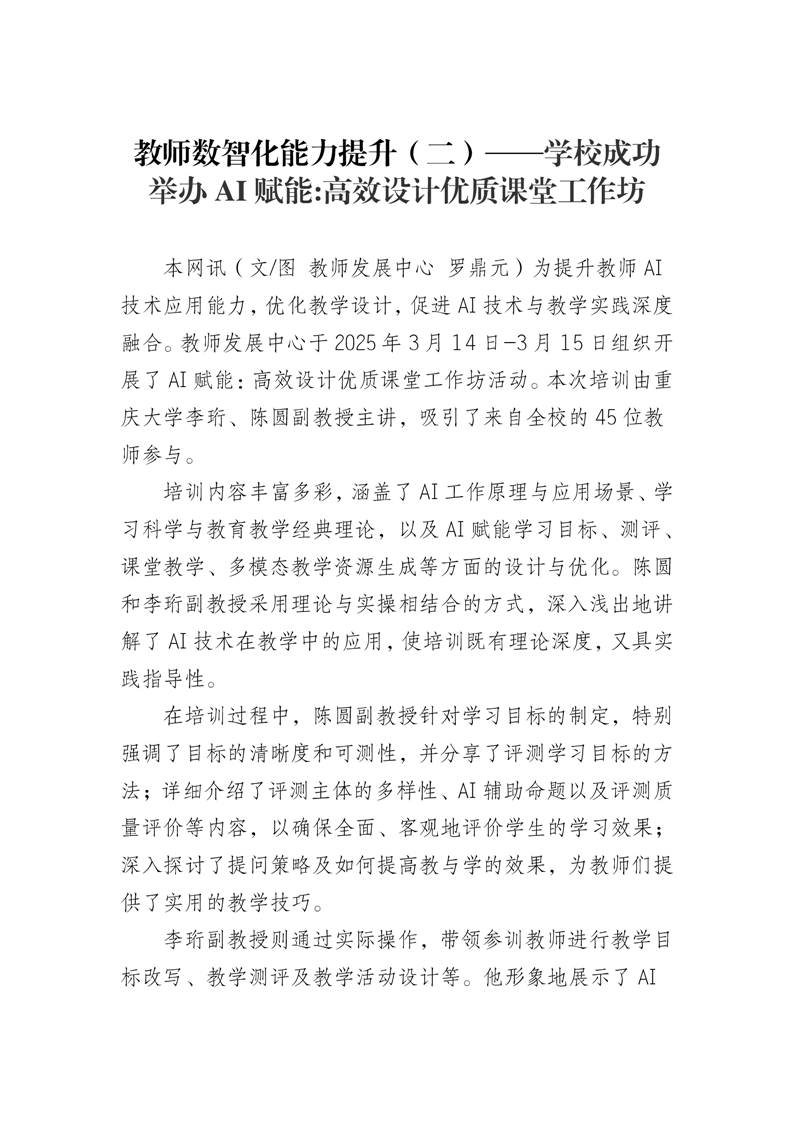 教师数智化能力提升(二)——学校成功 举办AI赋能:高效设计优质课堂工作坊