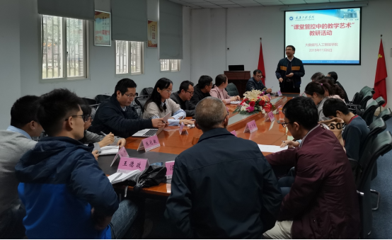 2019年11月6日下午15:10,在实习楼104会议室,大数据与人工智能学院举办了以“课堂管控中的教学艺术”为主题的教研活动,参会有人事处处长李静、教师发展中心曹明武教授,以及大数据与人工智能学院全体专任教师,会议由廖宁老师主持。