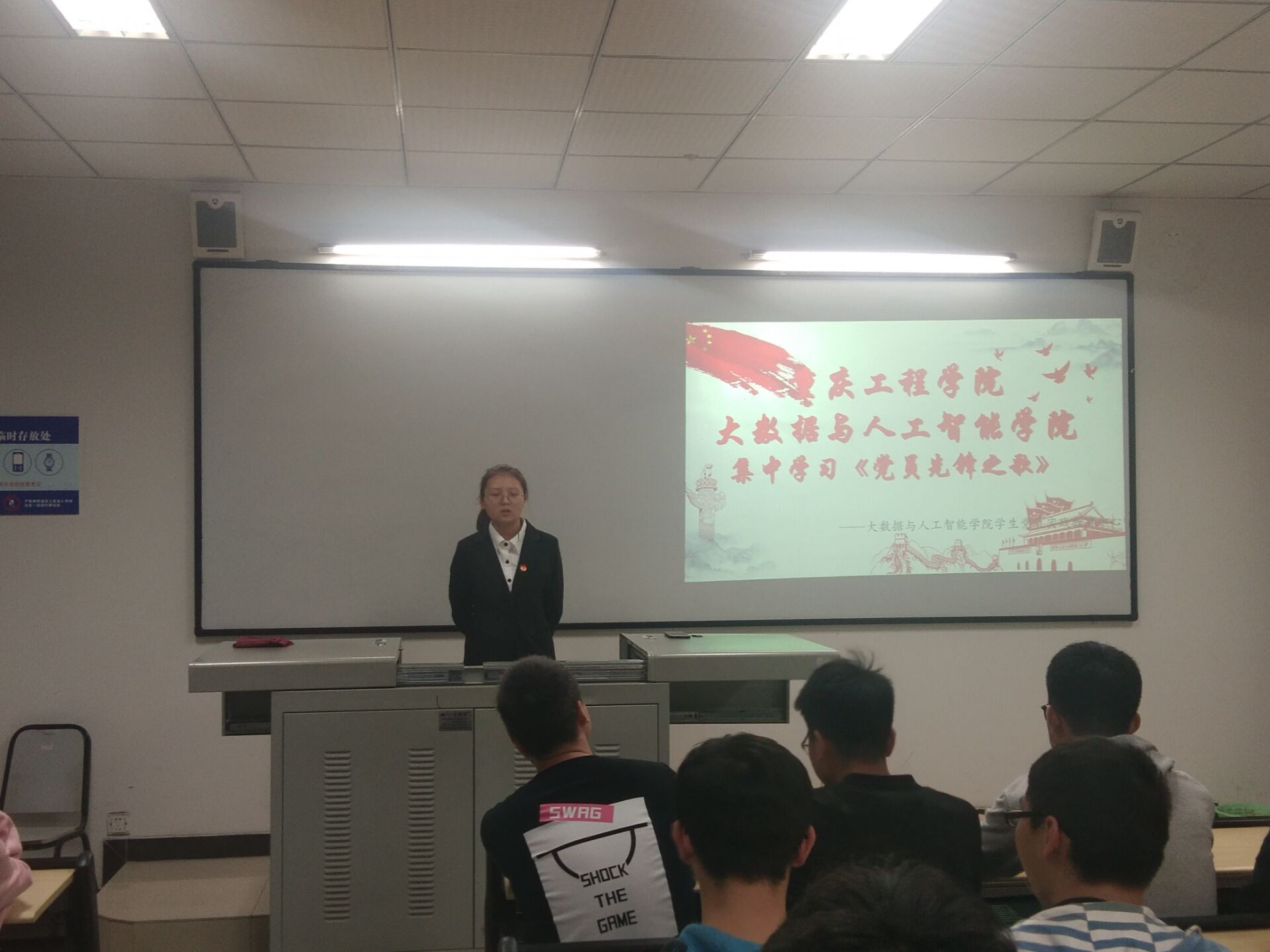 2019年11月10日晚上六点半,在六教222教室由大数据与人工智能学院全体学生发展党员参加并学习《党员先锋之歌》,活动由夏嘉遥同志主持。