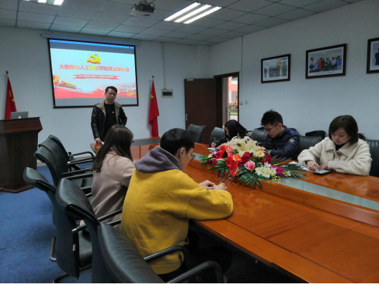为深入学习贯彻党的十九届四中全会精神,大数据与人工智能学院于2019年11月23日下午16:00在实习楼104召开党支部大会,学院党支部书记吴优老师、教师党员、学生党员出席会议,吴优书记主持会议并讲话。