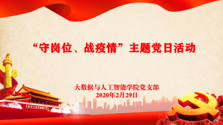 坚决打赢新冠疫情防御阻击战,落实本职岗位工作,我院党员在行动!2月29日上午10:00大数据与人工智能学院党支部于学习强国APP上开展“守岗位、战役情”主题党日活动,本次活动是一场别开生面的“视频”主题活动。由吴优书记主持,全院师生党员、预备党员参与。