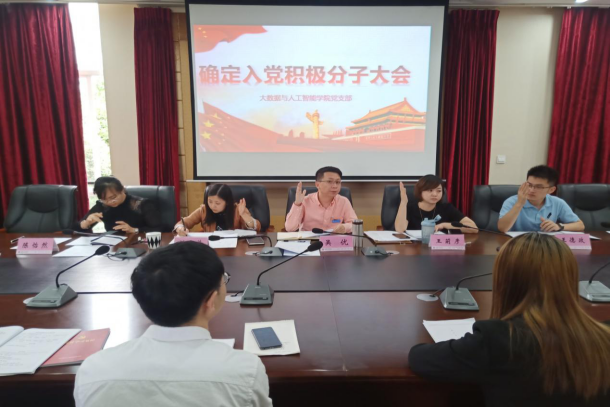 为确实把握入党动机,学习优良党员品质,为党组织注入更多的新鲜血液,大数据与人工智能学院党支部深入到学生宿舍、班级进行走访调研,广泛听取了老师同学的意见,于5月27日下午15:40在第七会议室开展了确定入党积极分子讨论大会。会议由吴优副书记主持,全院师生党员、发展对象参与。