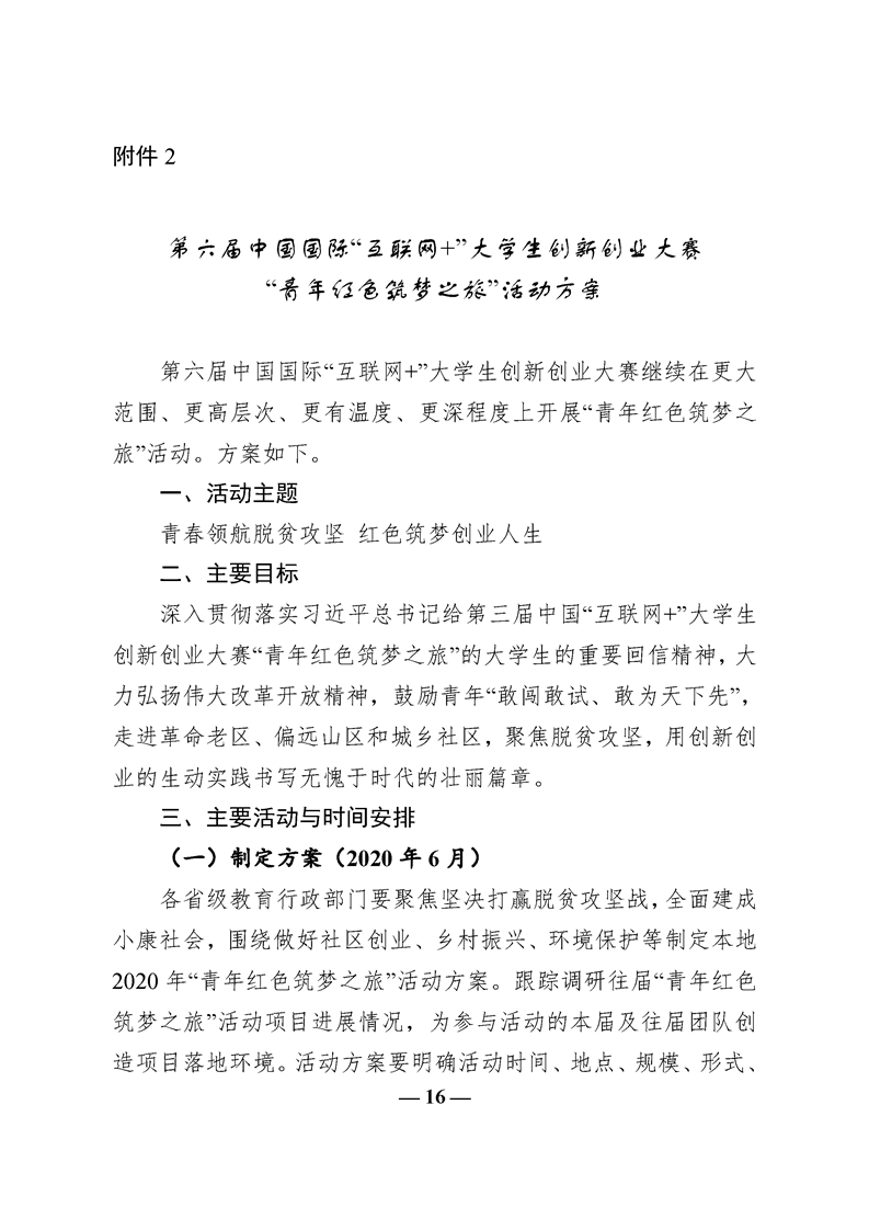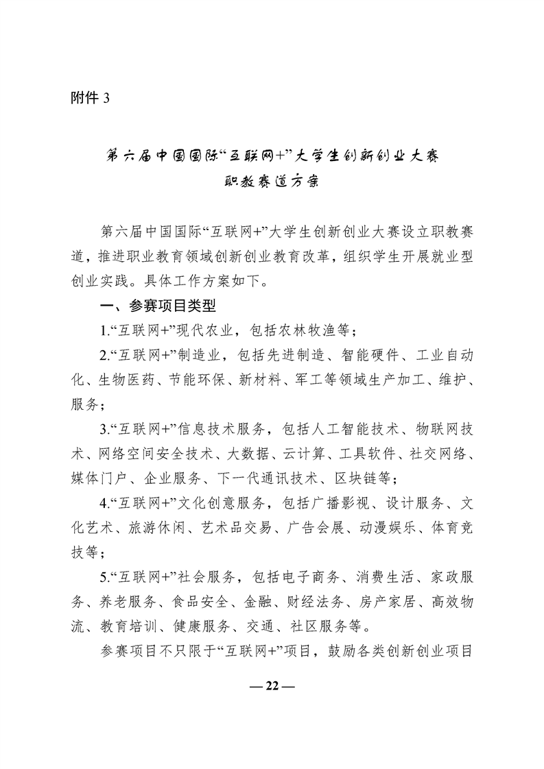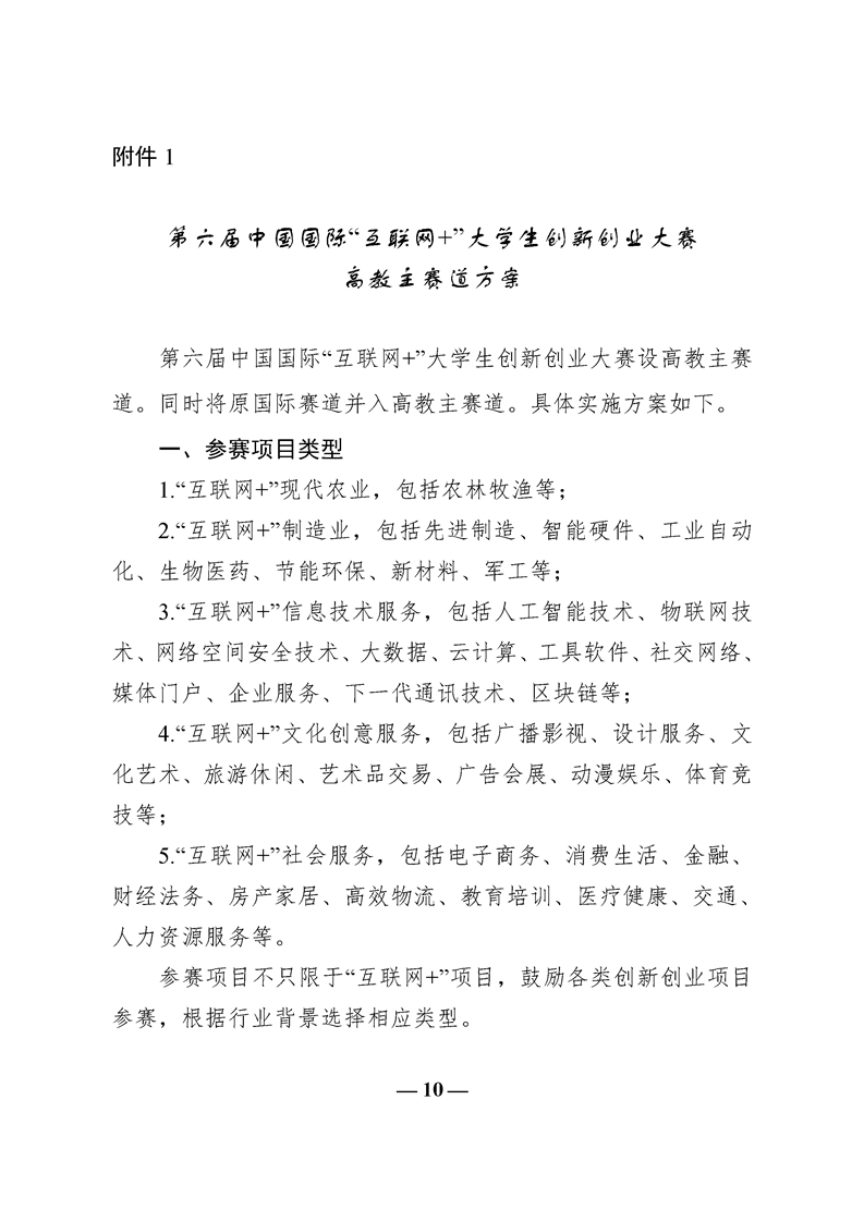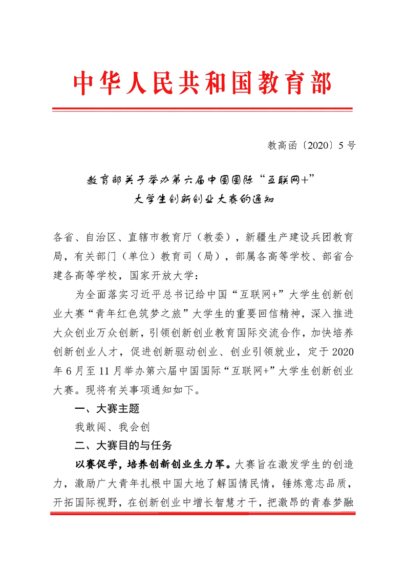 附件1:教育部关于举办第六届中国国际“互联网”大学生创新创业大赛的通知