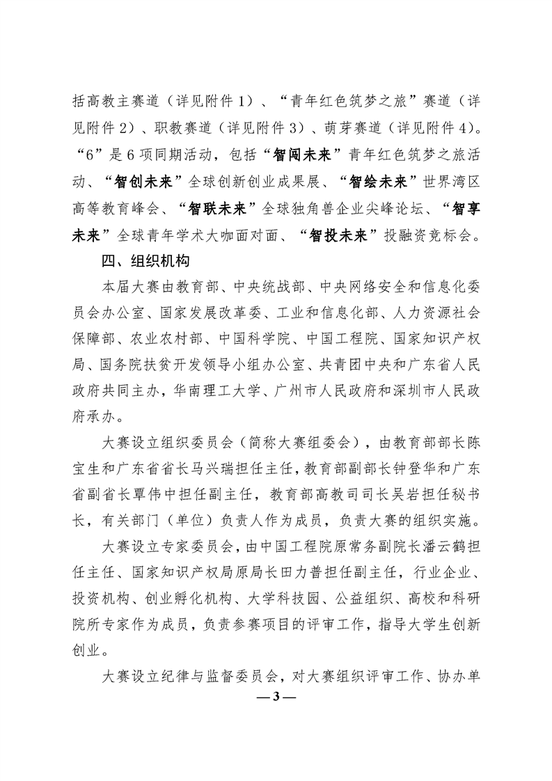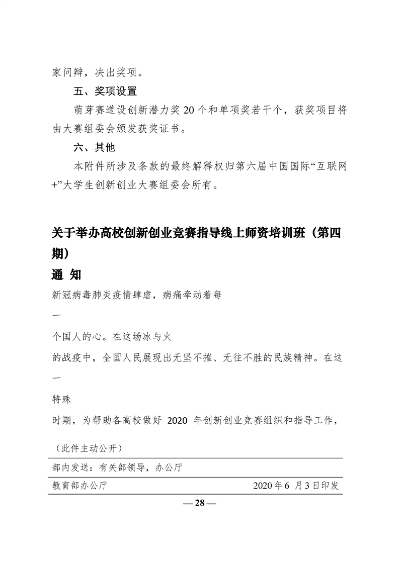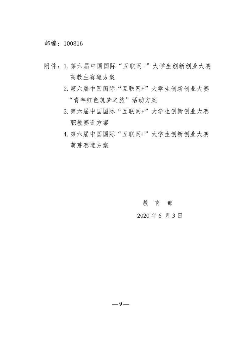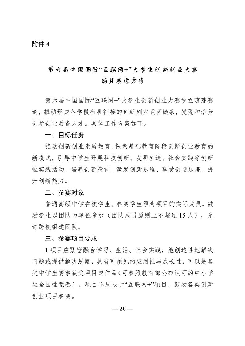 附件1:教育部关于举办第六届中国国际“互联网”大学生创新创业大赛的通知
