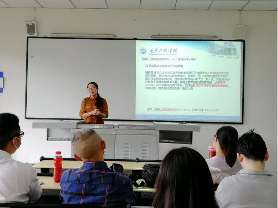 活动伊始,陈院长就《重庆工程学院课程考核(试)管理办法》、《重庆工程学院课程教学大纲编制指导意见》以及相关新教案模版等教学新文件进行了解读,并结合学院现有文件建设的实际情况,对全院教师做出了具体指导和要求。她指出,本次培训是有效实施实践教学的前提和依据,并重点就课程考核、过程性考核以及期末考试等内容同与会教师一起进行了认真而细致的讨论。