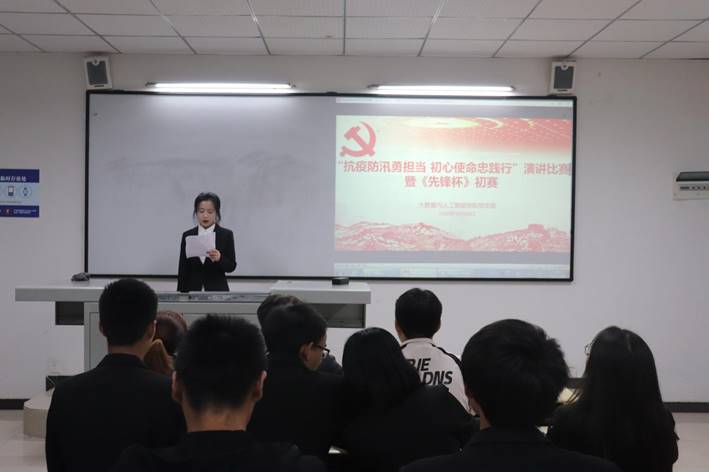 本网讯(图/唐晓渝 文/阎小兰)大数据与人工智能学院学生党员实践教育中心于10月20日19时,在第六教学楼210开展“抗洪防汛勇担当、初心使命忠践行”演讲比赛暨《先锋杯》初赛。此次活动由黄兰清同志主持,参加比赛的有我院全体预备党员。