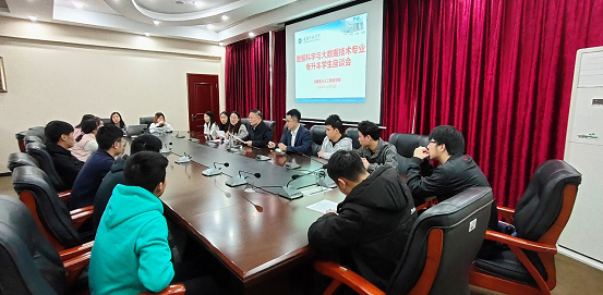 (本网讯图/庄巧伊 文/许琳)为明确专升本学生学习方向,提升教育教学质量,进一步完善教学管理体系,大数据与人工智能学院于11月2日13:00在第七会议室组织开展了数据科学与大数据技术专业专升本学生座谈会,会议由陈欣副院长主持,院长曹耀钦、副书记尚伟出席,教学秘书、辅导员、专升本学生,共计20人参会。