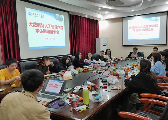(本网讯图/吴燕 文/许琳)为了进一步提升学生助理团队合作与协调能力,形成良好的团队合作氛围,更好地促进学生综合能力的培养,大数据与人工智能学院于11月18日在第七会议室组织开展了2020-2021-1学期学生助理团队建设活动,会议由办公室主任唐蕾老师主持,教学秘书刘雪梅、学院助理团全体成员,共计18人参会。