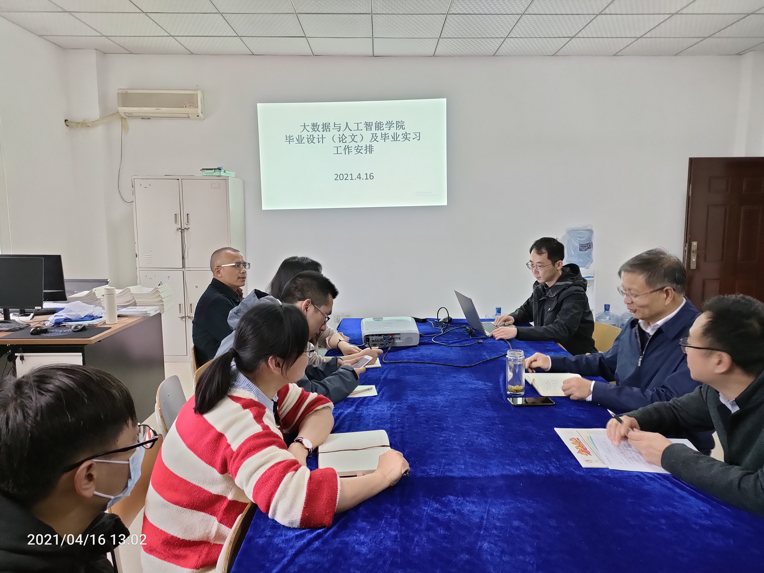 本网讯(文/图 唐蕾)为进一步加强实习管理,切实做好学院2021届毕业生毕业设计(论文)及实习工作,4月16日中午,在学院102办公室组织召开了毕业设计(论文)及实习工作推进会,会议由罗宇飞老师主持,院长曹耀钦、各系主任及指导教师代表出席会议。