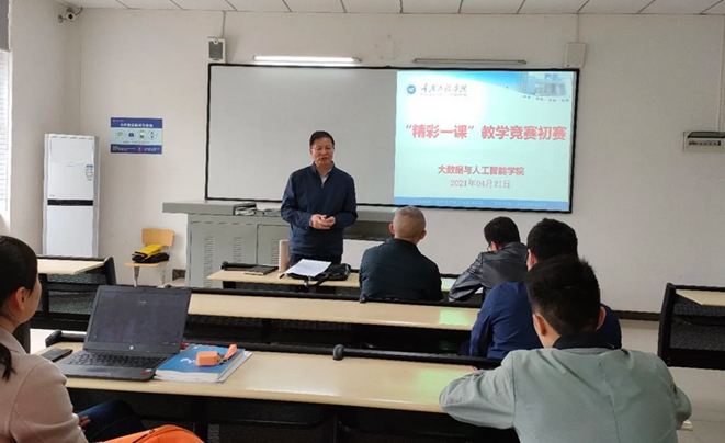 本网讯(图/唐蕾 文/刘雪梅)为了提高教师教学能力,提升数据科学与大数据、智能科学与技术专业的教学质量,大数据与人工智能学院于4月21日下午,在6115、6117举行了“精彩一课”教学竞赛初赛,大数据系、人工智能系分别进行。本次竞赛特邀嘉宾教务处副处长陈艳莲,曹耀钦院长、柏森教授、王贵新博士等专业教师担任评委,学院全体教师参加,竞赛由各教研室主任主持。