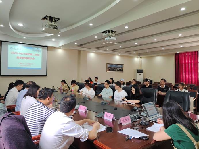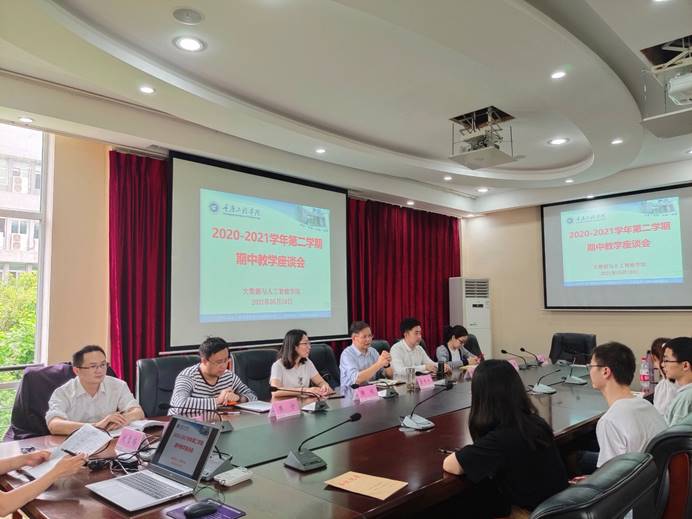 本网讯(图/文 庄巧伊) 为进一步完善教学质量保障体系,解决本学期学生课堂内外的问题,大数据与人工智能学院于5月10日12:50在第七会议室组织开展2020-2021学年度第2学期期中教学座谈会,会议由院长曹耀钦主持,副书记尚伟、副院长陈欣、杨倩出席,系主任、辅导员、教学秘书、各班级学委及代表参会。