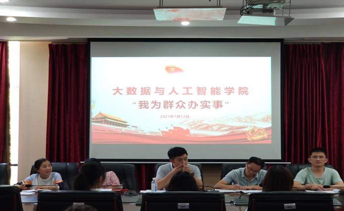 本网讯(图/唐晓渝 文/刘思丹)为进一步加强党员队伍建设,贯彻落实习近平总书记重要讲话精神。大数据与人工智能学院党支部于2021年7月12日下午14:00在学校第七会议室召开党员大会。参与本次大会的有学院党支部副书记尚伟同志、组织委员张庆同志、宣传委员唐蕾同志、纪检委员刘雪梅同志、党员及全体学生预备党员。