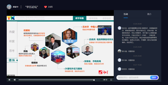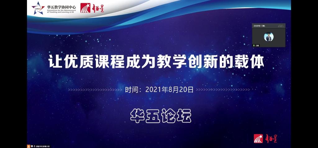 本网讯(文/图 唐蕾)为了推进我院教师教学方法创新和教学能力的提升,加强“课程思政”的学习,8月20日上午九点和下午两点,学院组织教师于线上共同观看并学习了有“华五教学协同中心”整体策划,超星集团主办的“华五论坛”直播讲座第一期和第二期。