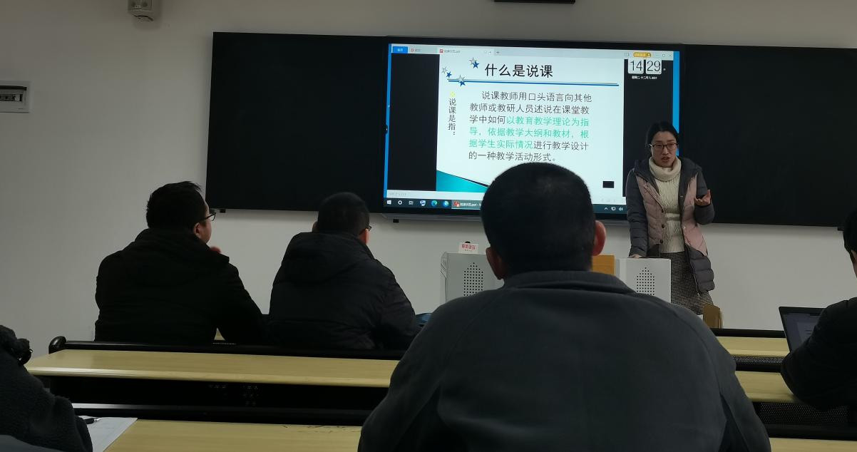 本网讯(文/图 邓微微)什么是说课?说课的特点有哪些?说课的步骤内容涉及哪些?大数据学院副院长陈欣给今年新入职专任教师进行了指导培训。全体新教师参加。
