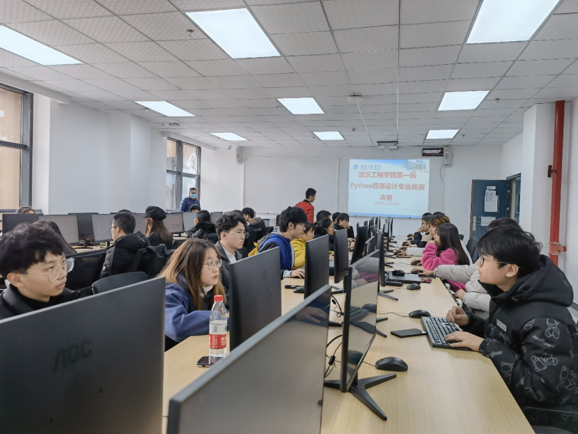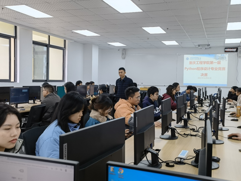 为进一步提高大学生综合素质和程序编码水平,培养良好的学习交流氛围,帮助同学们提前适应形如“蓝桥杯”等赛事节奏,让同学们在实践中发现不足,在不足中总结经验,在总结中提高能力。继《重庆工程学院首届Python程序设计大赛》(初赛)圆满举办后,决赛于2021年12月1日下午13:00-15:00在信息科技大楼202、203、204、301学院四个新建成实验室同步开展。19级、20级晋级选手共计176人参加决赛。决赛以上机考试形式进行程序设计实战,Python组和数据分析组乱序入座,角逐前三名。