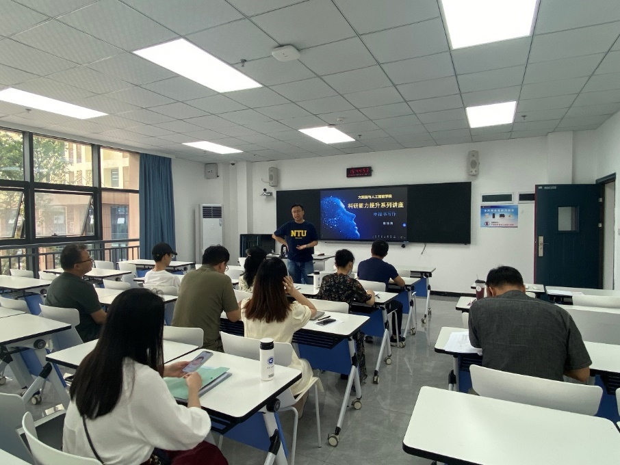 本网讯(文/图 邓微微)为提高新教师业务能力与科研水平,大数据与人工智能学院于2022年6月15日下午,召开了科研能力提升系列—项目申报书撰写专题讲座。陈怡然副教授主讲,副院长廖宁出席,学院相关教师参与。