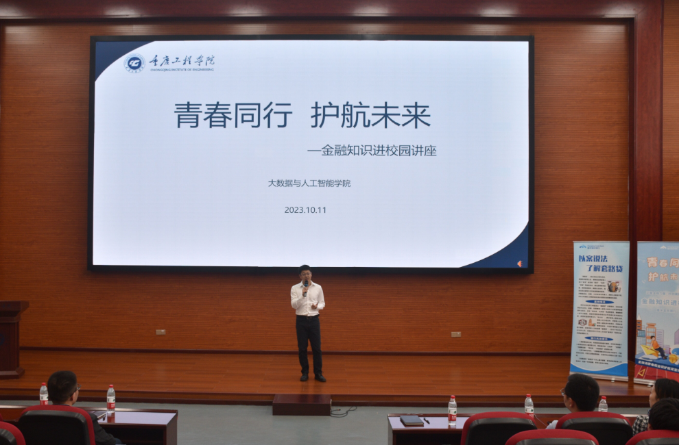 (文/图 大数据与人工智能学院 江丽娜、杨青松)10月11日下午,大数据与人工智能学院邀请重庆富民银行3名金融专家在7807开展“青春同行 护航未来”金融知识进校园宣传活动。活动由院长李钦主持,学院党总支副书记宁俊龙、分团委书记王惠俊,以及21、22级300余名学生共同参与。