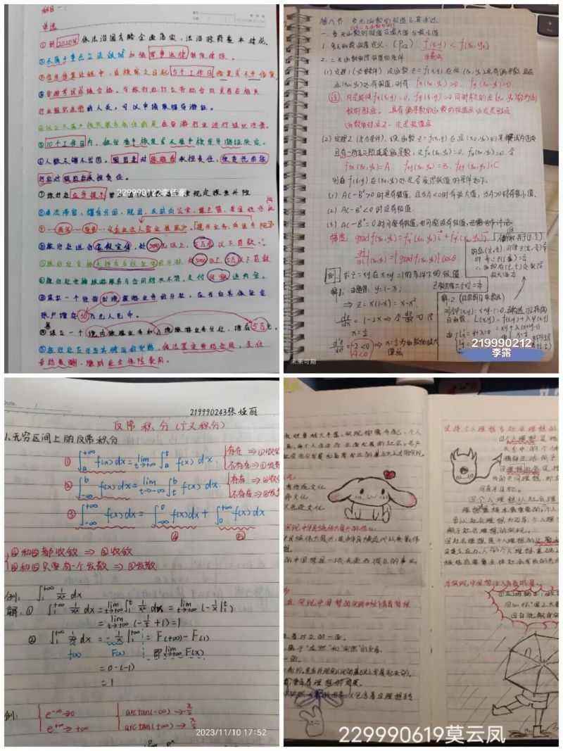 本网讯(文/图 大数据与人工智能学院 彭卿桓)为提高同学们的学习质量,引导养成良好的笔记习惯,大数据与人工智能学院团委学生会学习部于2023年11月10日开 始开展为期一周的“青春逐梦 妙笔生花”最美笔记活动。