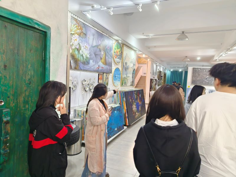 活动开始,美术馆馆长为大家介绍了丽沙美术馆的基本情况和部分重要展品,同学们依次参观丽沙美术馆的各个展厅,品鉴不同类型的艺术作品。之后,同学们来到书吧,各类美术书籍应接不暇,丰富的藏书吸引了同学们的注意,大家流连忘返。