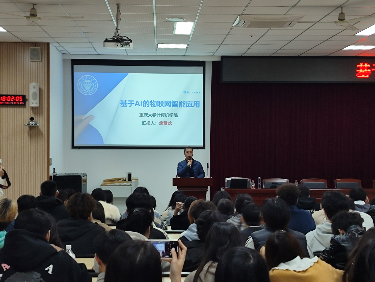 (图/文 大数据与人工智能学院 宋芸)11月26日,大数据与人工智能学院在第六教学楼302室开展“基于AI的物联网智能应用”讲座。讲座由重庆大学副研究员、焦贤龙博士主讲。主讲人曾荣获华为公司难题挑战“火花奖”,重庆大学优秀本科毕业论文指导教师等多项奖项并主持过博士后科学基金“异步睡眠无线多跳网络中基于干扰消除的组通信算法研究”等多项科研项目并结题。