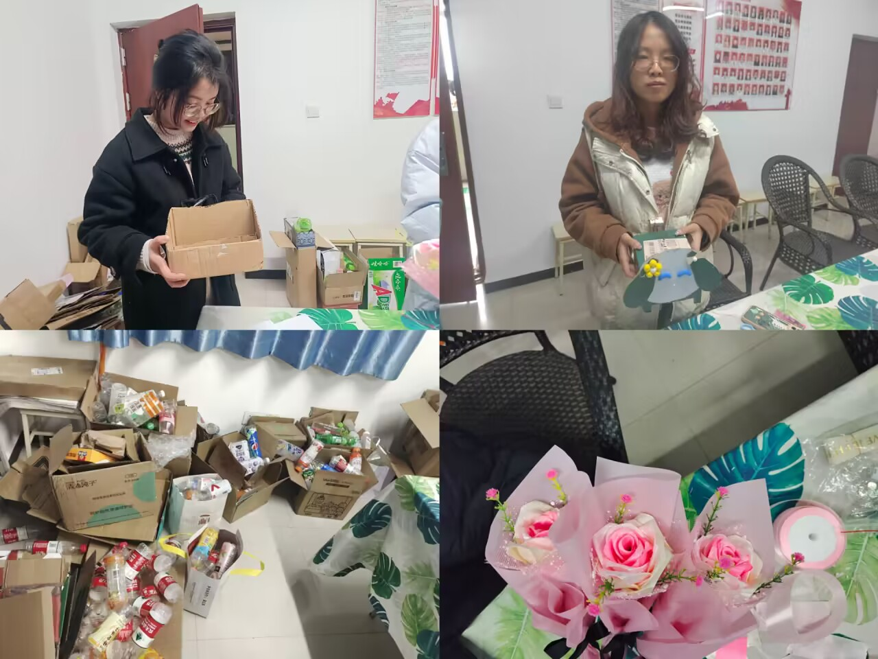 活动伊始,董峻萄同志为部门成员们讲解认证过程中的注意事项,并号召同学们收集纸壳、废瓶子,然后进行手工创作;接着,使用废旧物品创作了花束、“福”字装饰等,提高废物利用率,工作人员按照参与标准进行登记;最后,选择有寓意的手工作品送给了学院的四位教师党员,拍照留念。