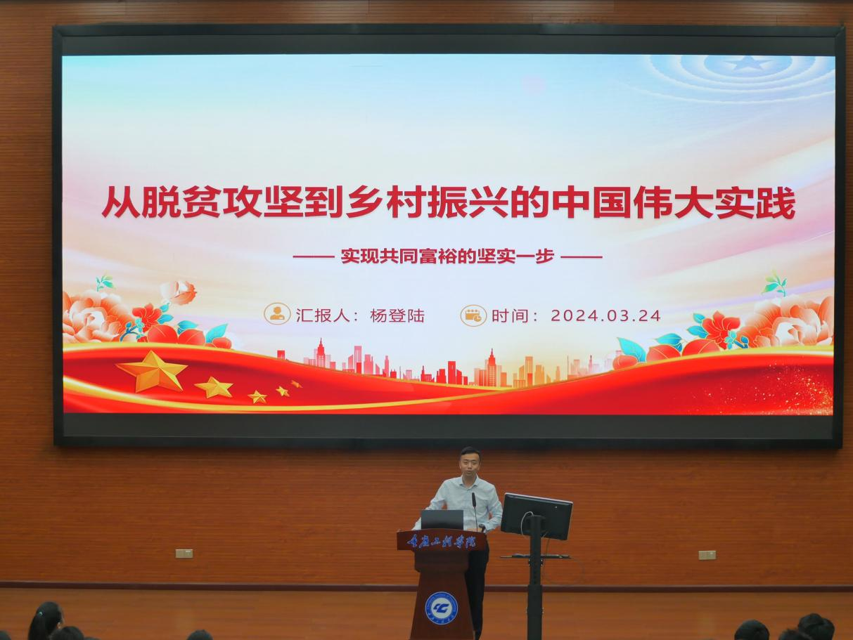 班会伊始,市级青年讲师团、重庆交通大学杨登陆老师以亲身经历讲述了乡村振兴、脱贫攻坚的伟大实践,深刻诠释了“上下同心、尽锐出战、精准务实、开拓创新、攻坚克难、不负人民”的脱贫攻坚精神。随后,大数据与人工智能学院分团委书记王惠俊老师带领同学们学习了二十届二中全会的主旨精神。紧接着由云智志愿服务队云智宣讲团为大家普及结核病防治知识,为同学们的健康保驾护航。