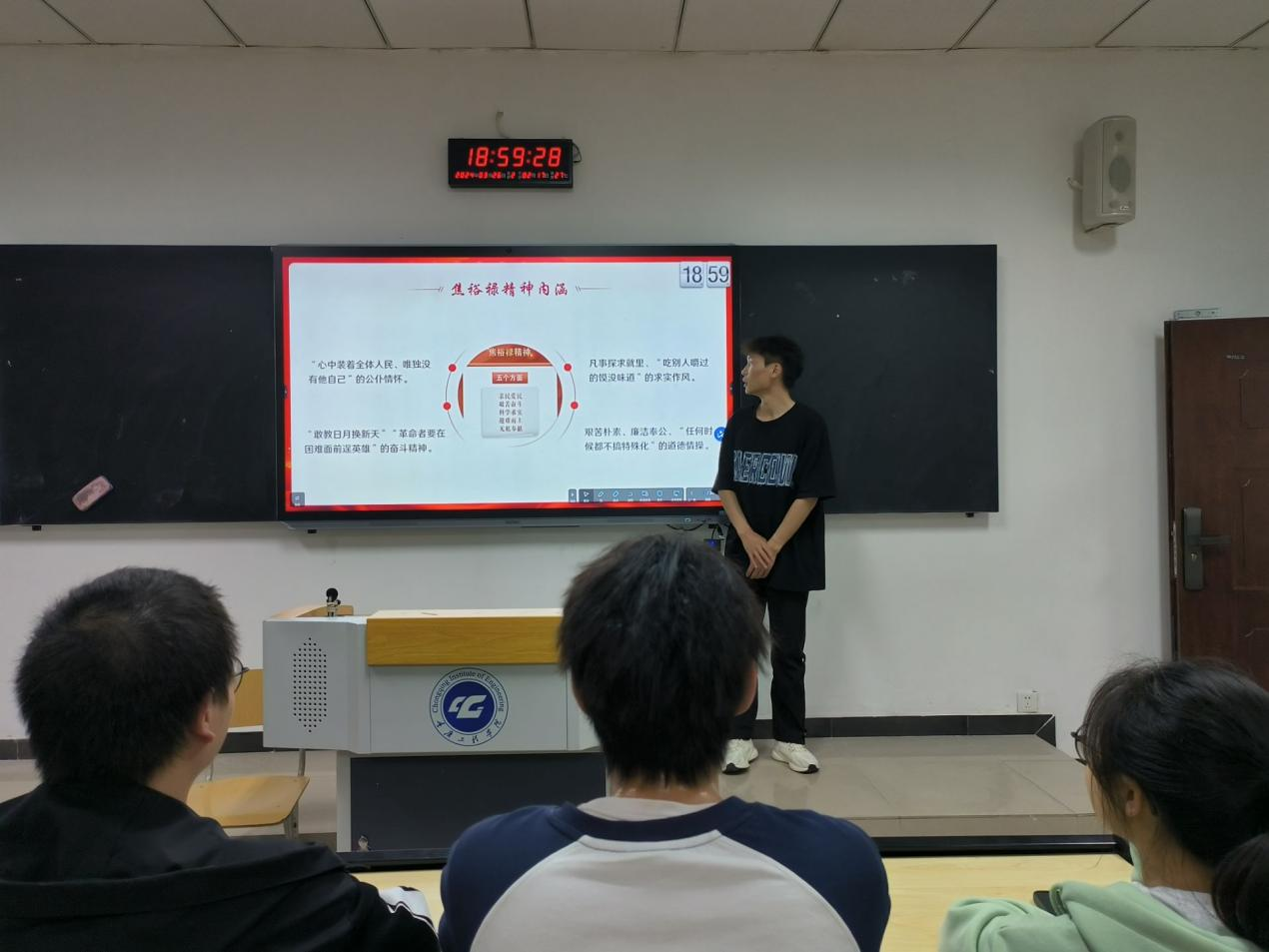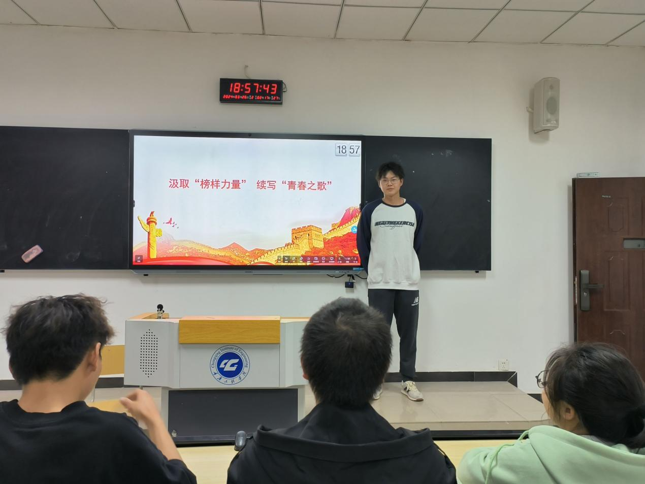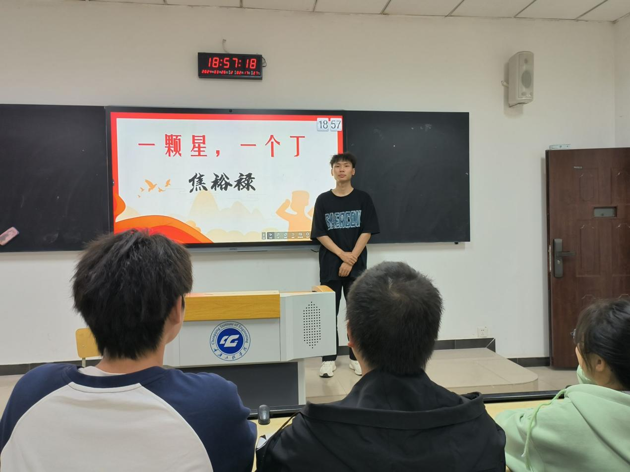 活动中,彭卿桓同学给我们讲述了“一颗星,一个丁”焦裕禄同志的个人事迹。“鞠躬尽瘁,死而后已”是焦裕禄光辉的人生写照,他是党的好干部、人民的好公仆。作为“县委书记的榜样”,焦裕禄更是为同学们树立了学习标杆。袁涛同学分享了他所认为的榜样——王信水同志。“踏破铁鞋行千里,叩敲大地绘新图。”就是对他的描述。从他的身上,我们看到了他执着的事业心,看到了当代青年的责任担当和爱国情怀。