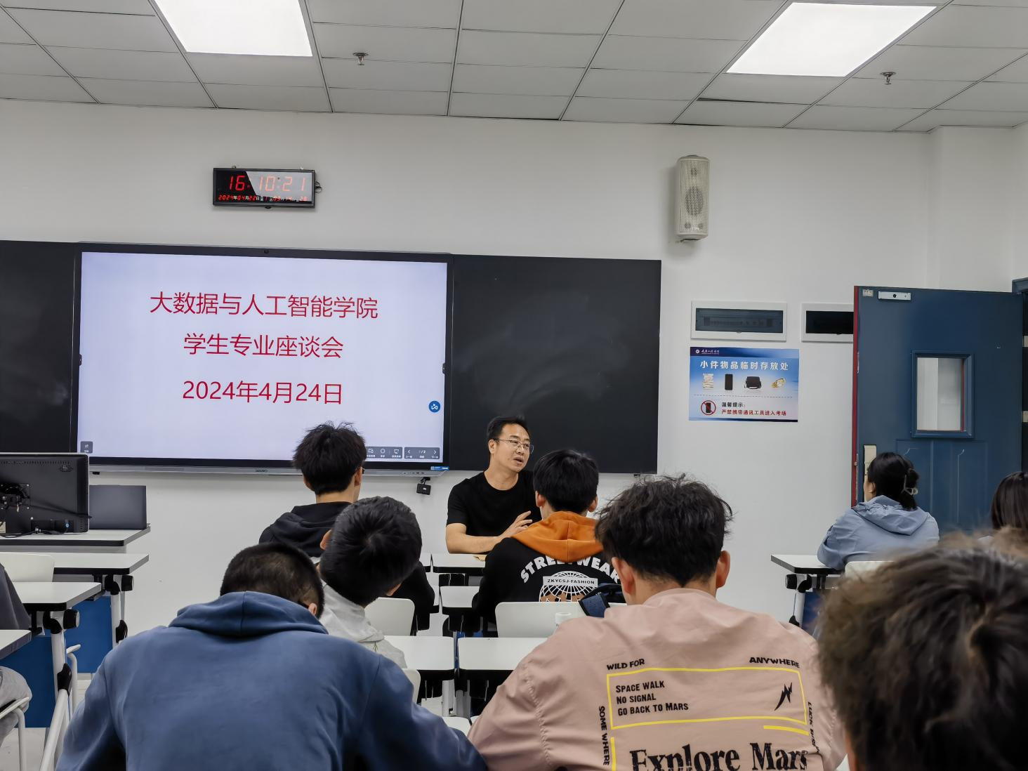 本网讯(图/文 黄磊)为进一步详细了解学生学习情况,帮助同学们更好地掌握专业知识,提高学习效率,大数据与人工智能学院于2024年4月22日16:00在7207教室组织召开《大数据采集与处理》课程的学生专业座谈会,会议由院长助理周勇主持,22大数据技4-5班学生代表参与。