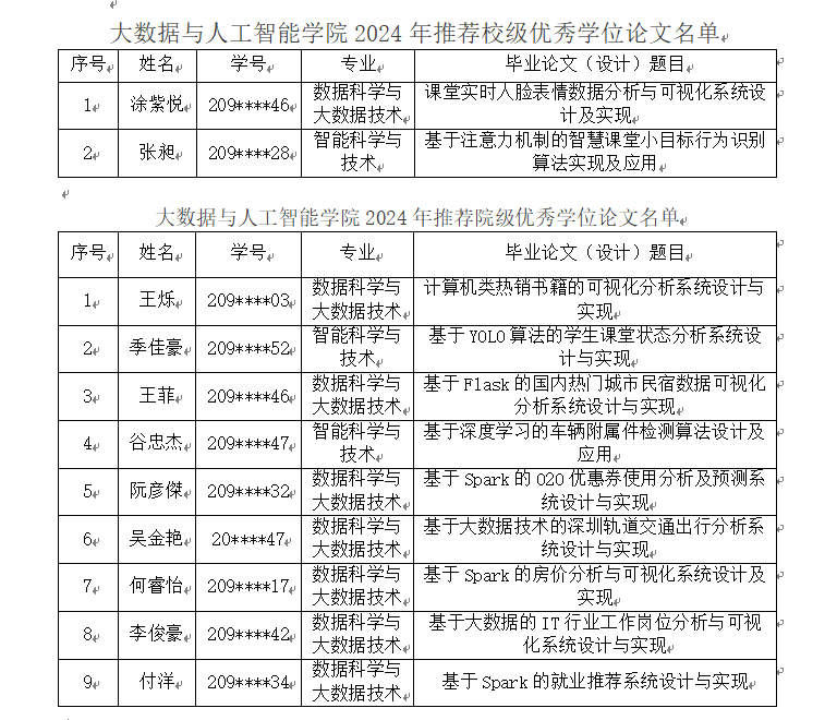 大数据与人工智能学院2024年优秀学位论文评选结果公示