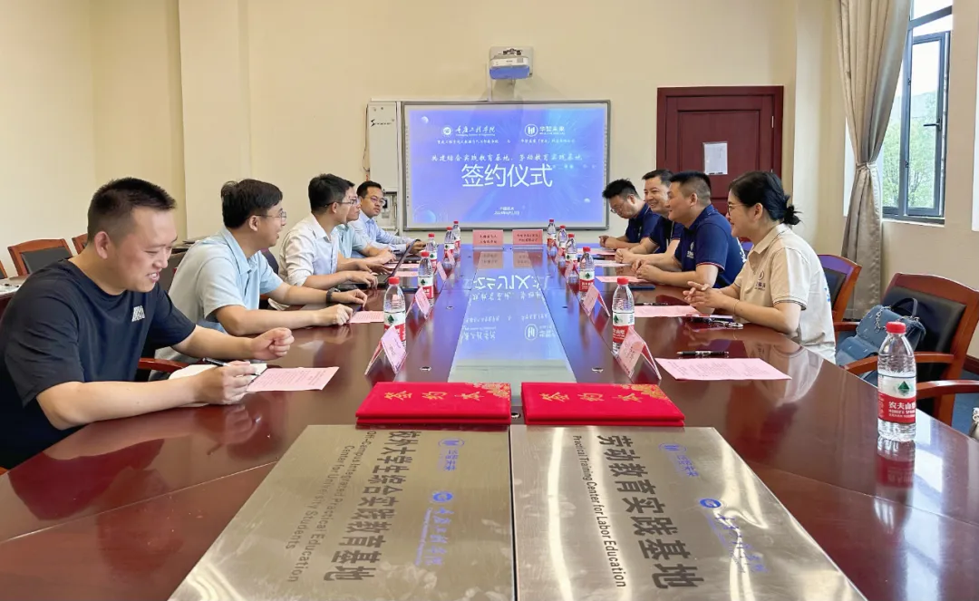 本网讯(文/图 杨孟凡)为进一步做好学院实习实训基地群建设,提升“校企合作、产教融合”工作质效,6月19日,大数据与人工智能学院成功牵手华智未来(重庆)科技有限公司,并在行政楼207会议室举行签约授牌仪式。学院院长李钦、党总支副书记宁俊龙、副院长廖宁、副院长吴平、就业科科长敬夫,华智未来(重庆)科技有限公司总经理曾强、项目总监王友平、品牌总监张婧出席签约仪式。