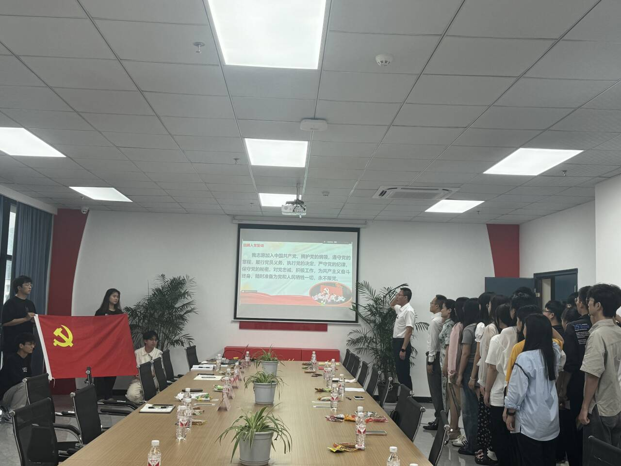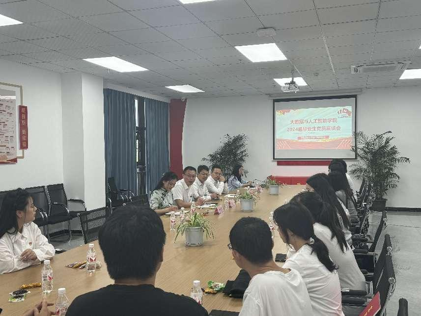 本网讯(文/图 谭童)为进一步提高毕业生党员政治素质,加强党纪理论学习,确保党性不变质、不变色、不变味,并持续发挥党员先锋模范作用,大数据与人工智能学院党总支于6月28日在7205召开了毕业生党员座谈会。此次会议由党总支副书记宁俊龙主持,学院院长李钦、副院长吴平、学生科长王惠俊,学生支部书记刘雪梅、组织委员杨斯琪,以及2024届全体毕业生党员参与。