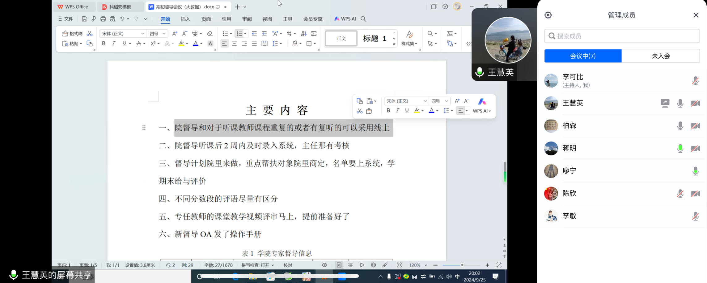 此外,会议还规划了后续教学督导的听课计划,并确定了听课的重点,以期促进教学质量的全面提升。