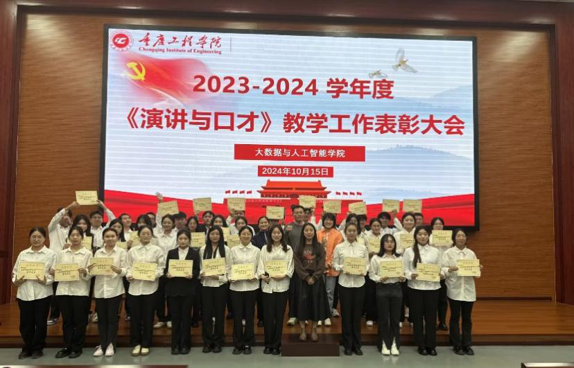 本网讯(文/图 黄磊)为全面培养学生卓越的演讲与表达能力,进一步增强其个人综合素质及就业竞争力, 着重表扬本年度学生的不懈努力和卓越表现,助力其全面发展,大数据与人工智能学院于2024年10月15日18:00,在7807报告厅成功举办了2023-2024学年《演讲与口才》教学工作表彰大会暨先进个人事迹分享。
