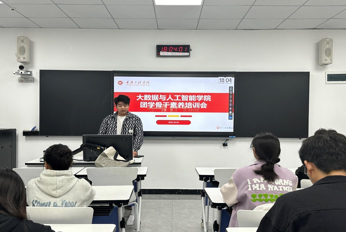 本网讯(文/图 大数据与人工智能学院 郭梁东 罗磊)2024年10月10日,大数据与人工智能学院分团委于7209开展团学骨干素质培训会,全院团学骨干共同参与。