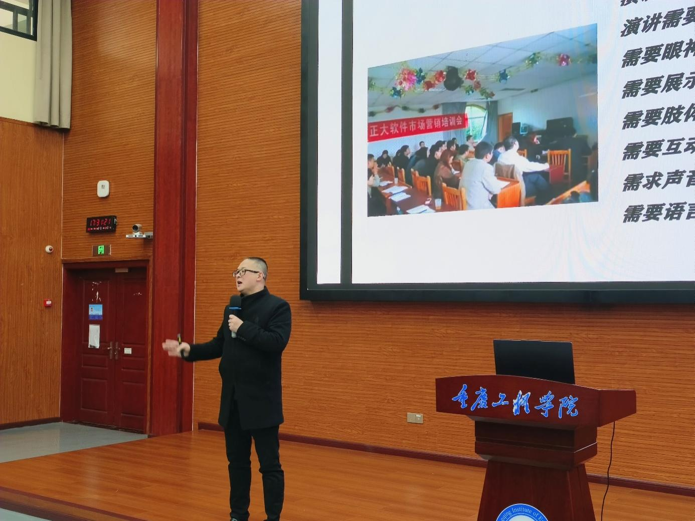 本网讯(文/图 大数据与人工智能学院 郭梁东 汤越)12月15日,大数据与人工智能学院在7807报告厅举办了主题为“演讲技巧与自信心培养:大学生如何成为演讲高手”的专题讲座。本次讲座特邀高级职业培训讲师张勇老师担任主讲,旨在提升学生的演讲能力和自信心,为未来的职业生涯增添竞争力。